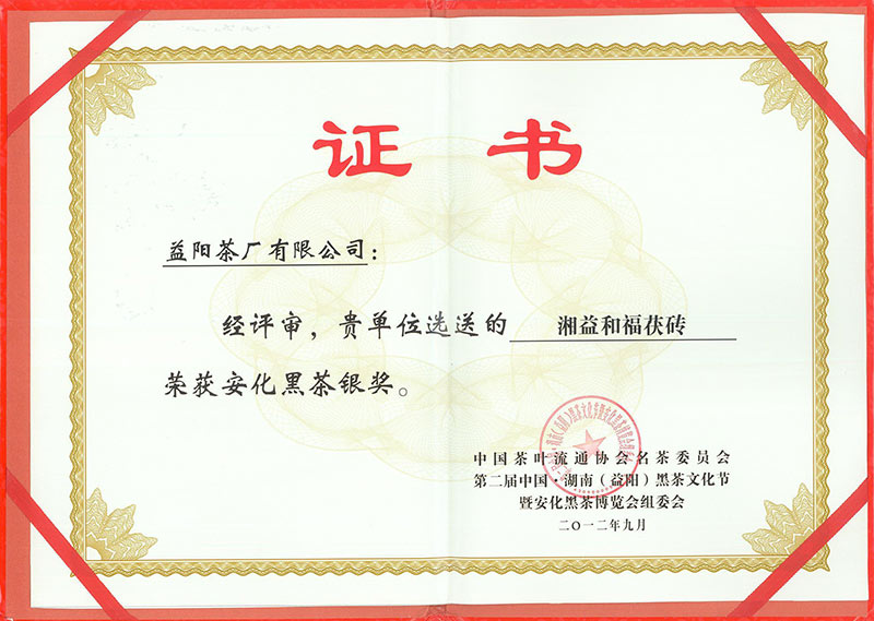 2012年 第二届中国湖南黑茶文化节银奖(和福)