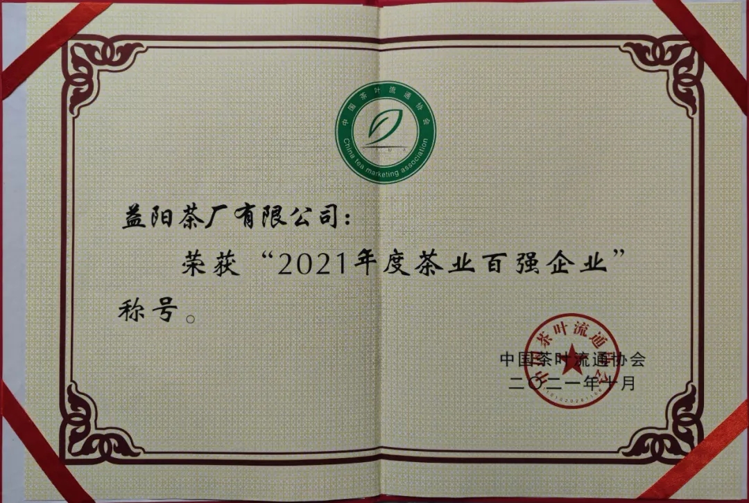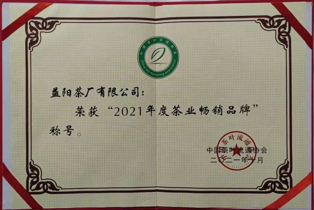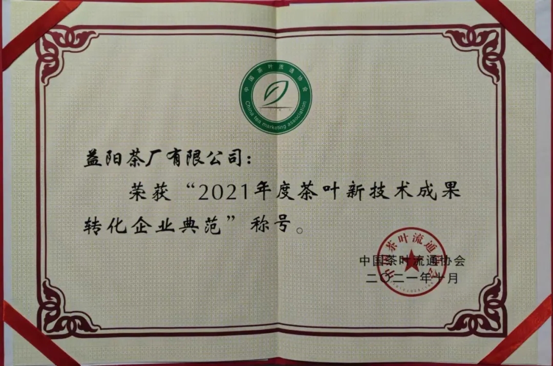 △益阳茶厂有限公司荣获【2021年度茶业畅销品牌】△益阳茶厂有限公司荣获【2021年度茶叶新技术成果转化企业典范】