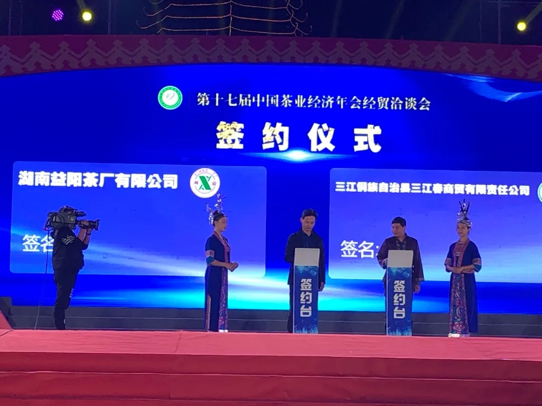 益阳茶厂始终秉承匠心制茶的理念,肩负高度的使命感为茶产业发展不断发力,传承经典的同时不忘创造经典,一步一脚印、稳扎实打,奠定了其黑茶领头羊无可撼动的地位。并在第七届中国茶业经济年会经贸洽谈会中与三江春商贸有限责任公司签订战略协议。