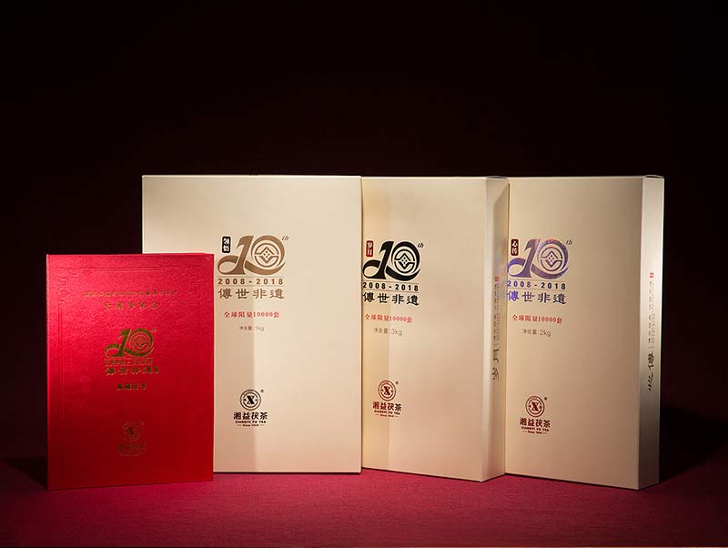 此款组合纪念茶限量收藏礼盒套装为隆重纪念茯砖茶制作技艺列入国家非物质文化遗产保护名录十周年包含“岁月3kg”、“心传2kg”、“领悟1kg”三块精制手筑茯砖,每套均有刘杏益大师亲笔签名,并配备有独立收藏编号的典藏证书,共10000套,收藏品饮价值皆宜。