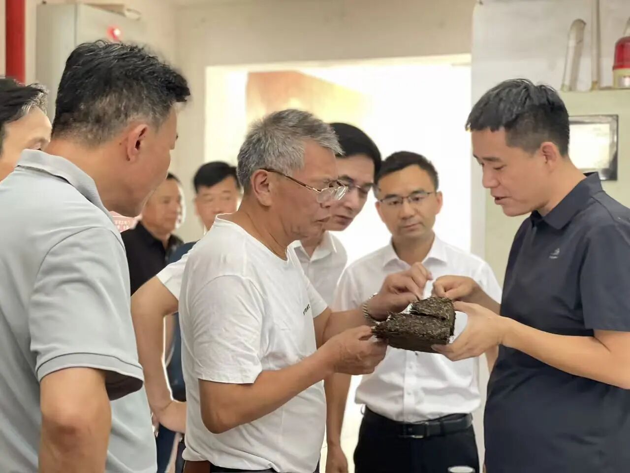 考察团深入参观公司筛分车间、压制车间及金花酵库,详细了解茯砖茶的传统制作技艺与现代生产工艺。在随后举行的座谈会上,双方就茶叶产业发展、品牌建设以及潜在合作机遇等进行了交流。