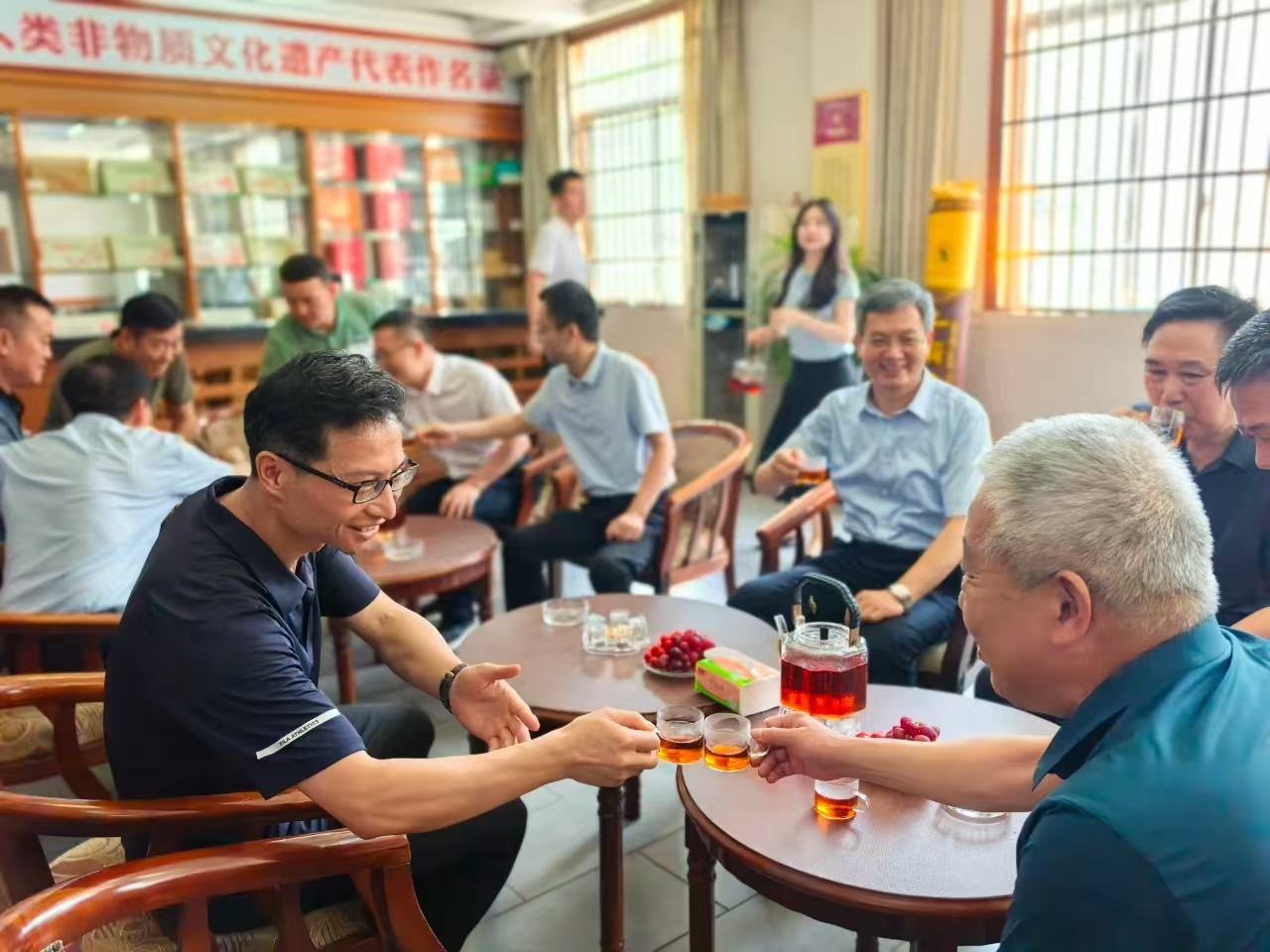 5月21日,新疆维吾尔自治区供销合作社联合社党组成员、理事会副主任王贵勇、中华全国供销合作总社人事部副部长、自治区供销社政策法规处处长何贤志,率吐鲁番市供销社党组书记、理事会主任魏学光,高昌区供销社党组书记、理事会主任王朝阳,鄯善县供销社党组书记、理事会主任陈帅,托克逊县供销社党组书记、理事会主任李长红等调研组一行,在湖南省供销合作总社二级巡视员赵劲松、省茶业集团纪委书记、工会主席褚世炯等领导陪同下,赴益阳茶厂有限公司调研边销茶产销情况。双方围绕边疆民生茶供应展开深入交流,共同续写湘疆两地七十载茶业情缘。