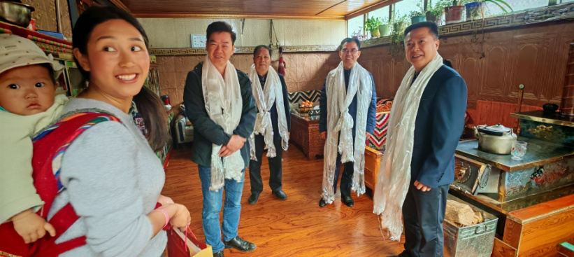 考察团一行随即前往山南市隆子县调研,与隆子县委书记李宁、县委常委、统战部部长嘎玛旦增等领导进行了会谈。赵颖君一行在县委常委、统战部部长嘎玛旦增、副部长索朗巴珠的陪同下,翻越了三座海拔超5000米山峰,深入隆子县斗玉珞巴民族乡、玉麦乡、扎日镇等乡镇及村,不仅学习了蔵区同胞的爱国主义思想、情怀与精神,而且考察了茶叶加工厂、了解藏区本地小众茶的生产、区内区外茶消费情况等,与此同时,还走进藏民同胞家中,代表益阳市委统战部赠送“湘益”茯茶、表达了益阳人民的热情厚爱与对藏区人民的美好祝福。